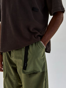 A deconstructed study in brutalist architecture, French workwear and S.T.S. era spacesuits design. Patterned around the shapes of human bodies in motion for terrestrial excursions and inner discovery.