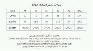 The MS-112PA P_Article Tee forms the foundational layer in the structural complex, assembled with its loose, boxy fit in a breathable, cool touch fabric.